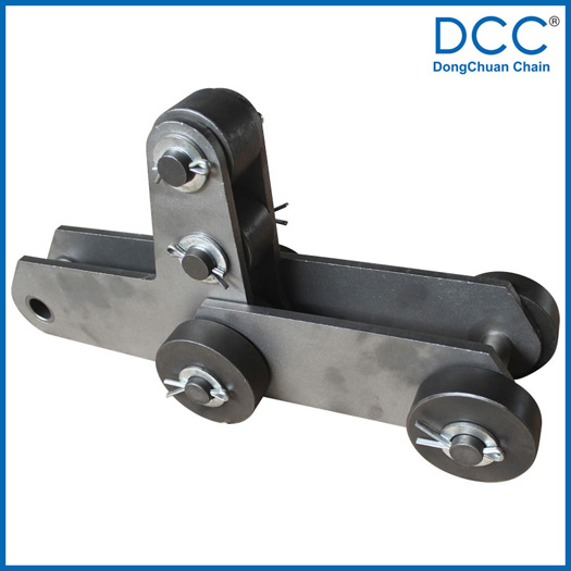 鏈條選用合金鋼材料,對于有部分需承受較大的載荷的鏈條采用了專用的軸承作為鏈條的轉動零件。使鏈條的承載力更大,同時也降低了鏈條的運行負荷
